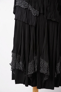 Black/spot two-piece An easy layered top and skirt with spotty trim in a stretch crinkle fabric. An easy to wear combination. The skirt is fully elasticated. |