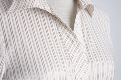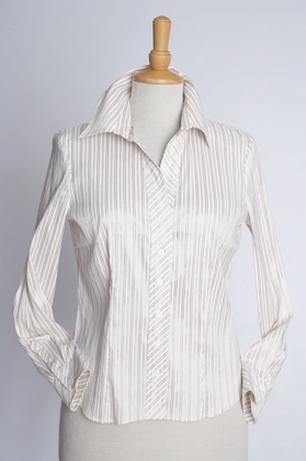 Gold stripe shirt A lovely fitted shirt with fine gold stripe in a stretch cotton mix. |